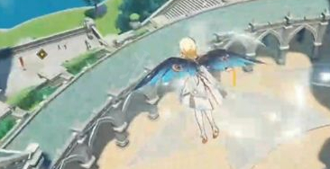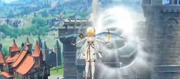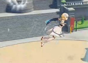 1.首先起跳向前飛,會有白色的加速圈讓角色向雕像方向加速飛行。