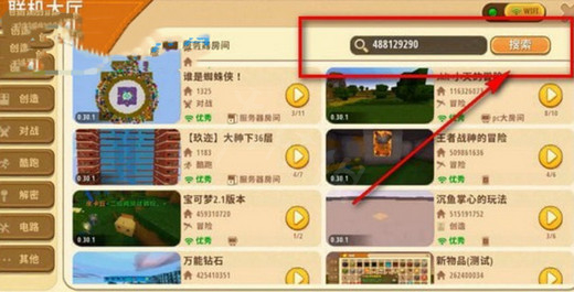 6、還有一種方法就是讓我們的好友在聯機大廳的搜索框中,輸入我們的迷你號來查找創建的房間,然後加入進來。