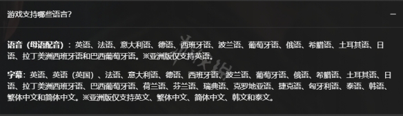 遊戲支持簡體中文和繁體中文,同時遊戲支持23種語言。