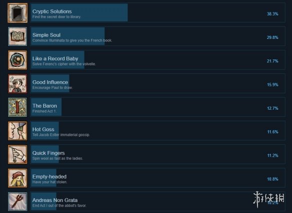 首頁 Pentiment 攻略 《Pentiment》成就有什麼?遊戲成就獎杯一覽 2022-11-16 Pentiment是一款黑曜石工作室出品的探索類冒險解謎遊戲。遊戲中有許多有趣的成就可以完成,今天小編給大家帶來Pentiment成就獎杯一覽,感興趣的小夥伴快來看一下吧。遊戲成就獎杯一覽 遊戲中共41項成就(點擊圖片可查看大圖) 以上就是Pentiment成就獎杯一覽全部內容,想要了解更多相關攻略的小夥伴可以持續關注,這里每天會為大家推送最新最全的攻略,一定不要錯過哦。