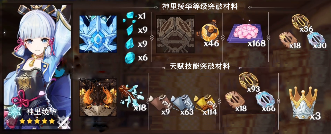神裡綾華的突破材料: