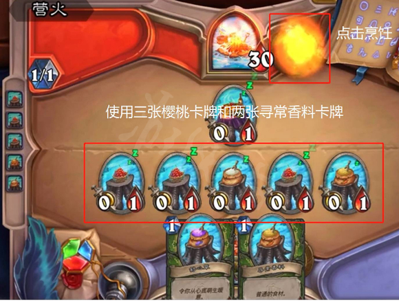 玩家需要兩個蛋和一個舒心草共計三張卡牌點擊火焰合成超級煎蛋卷,至此完成第一道謎題。
