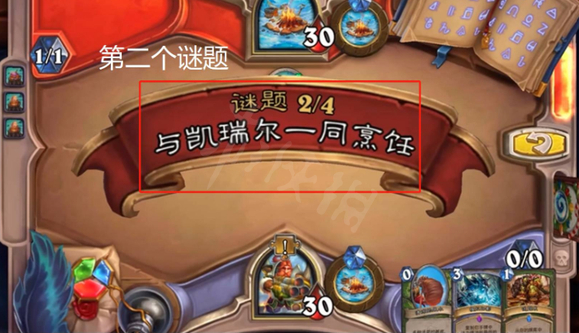 玩家使用兩張清涼的泉水卡牌和一張燉龍蝦卡牌,然後點擊右上角的烹飪,第二個謎題就完成了。