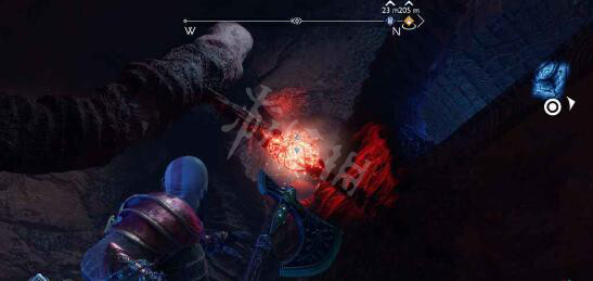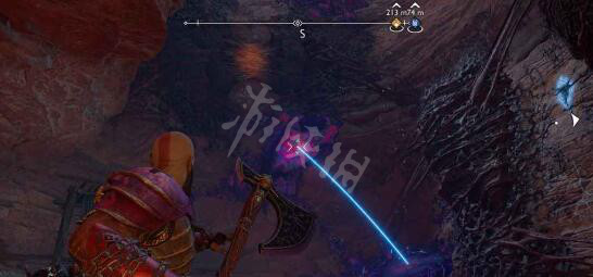 4、繼續在該區域掙扎,直到到達一些緻密的蜂巢物質,可以通過將斧頭彈到水晶上來打破這些物質。