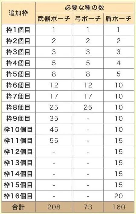 要升級揹包就需要一種材料——克洛洛的果實,需要的數量如下表: