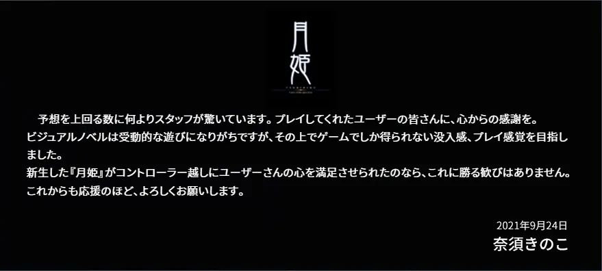 為紀念實體銷售和數字版下載量合計超過 24 萬部,劇本導演奈須蘑菇發表了致謝感言: