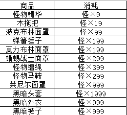 剛開啟解鎖商人只可以買:怪物精華、木拖把、波克布林面罩;
