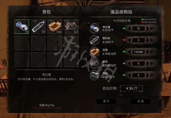 游戲中玩家可以通過撿瓶子來賺錢,撿到後可以到橋另一頭的廢品收購站售賣。