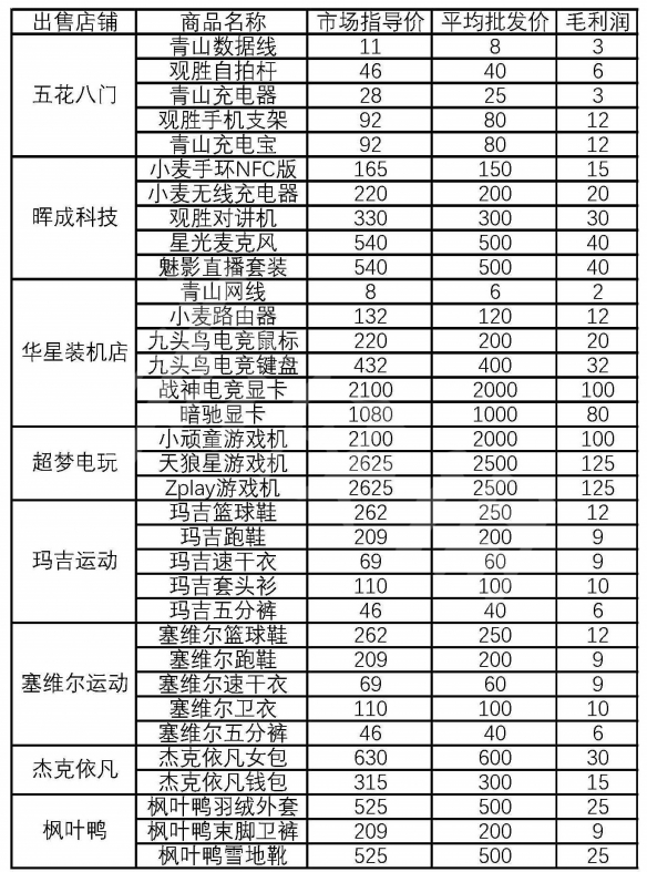 圖為各店鋪的商品價格各毛利潤,希望可以幫助到各位玩家。