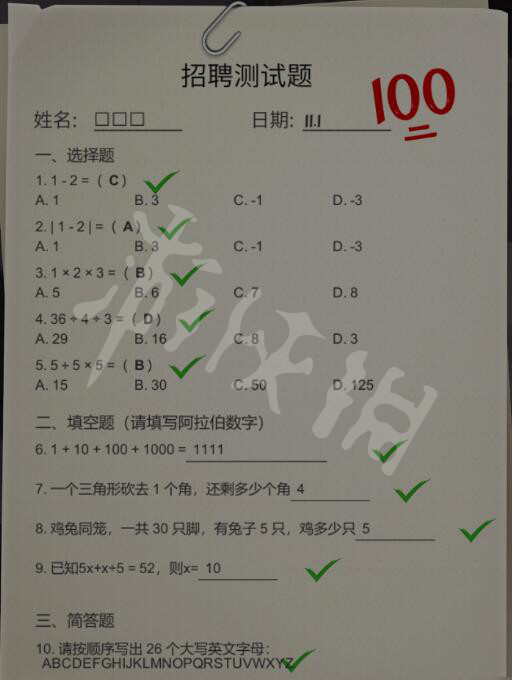 以上就是大多數招聘測試題答案一覽的全部內容,想要了解更多相關攻略的小夥伴可以持續關注,這里每天會為大家推送最新最全的攻略,一定不要錯過哦。