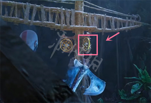 來到第二個藤屋時,向左看,攻擊圖中位置,然後利用飛索跳過去。