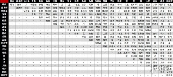 第一步,首先找到 松的生命力,在 阿提斯(倒懸者)身上,需要得到 式王子(戰車) 查詢下列表格,倒懸者無法直接變成戰車,但是節制+魔術師=戰車,而 倒懸者+力量=節制,所以首先我們需要一個擁有松的生命力的節制面具。