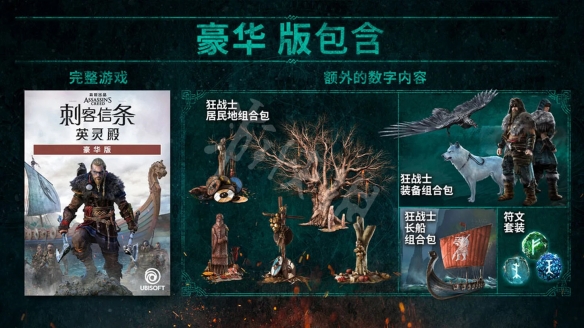 額外包含“狂戰士居民地組合包”、“狂戰士裝備組合包”、“狂戰士長船組合包”、“符文套裝”。