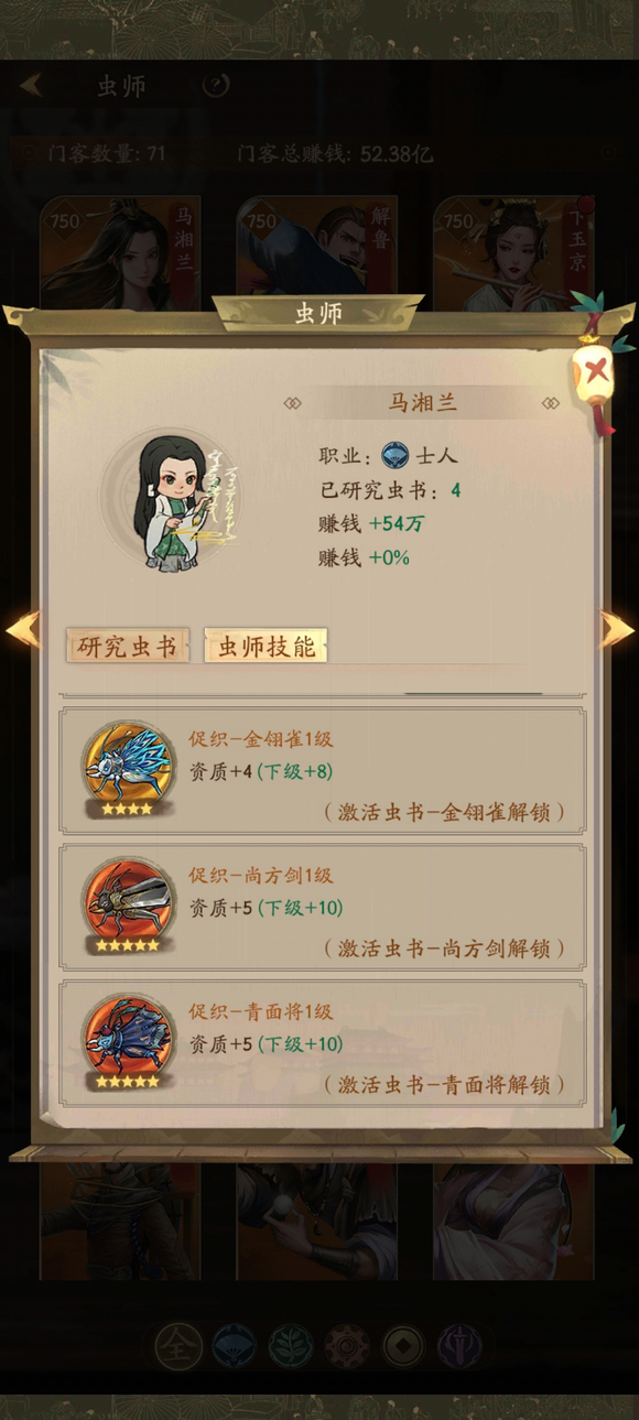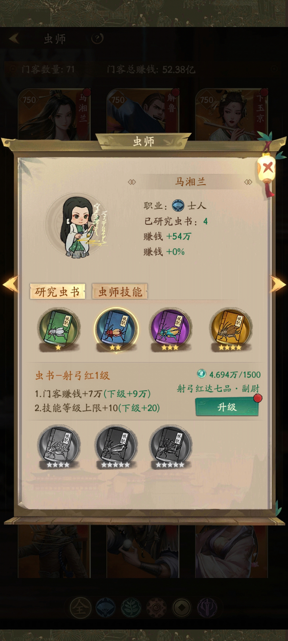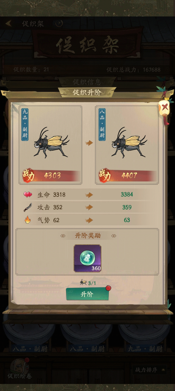 蟲子升階的戰力不直接到門客,單純的是蟲的戰力,大概率是後面斗蟲功能用的,升階給的道具用來開新的丹槽,還有繪捲成就進度