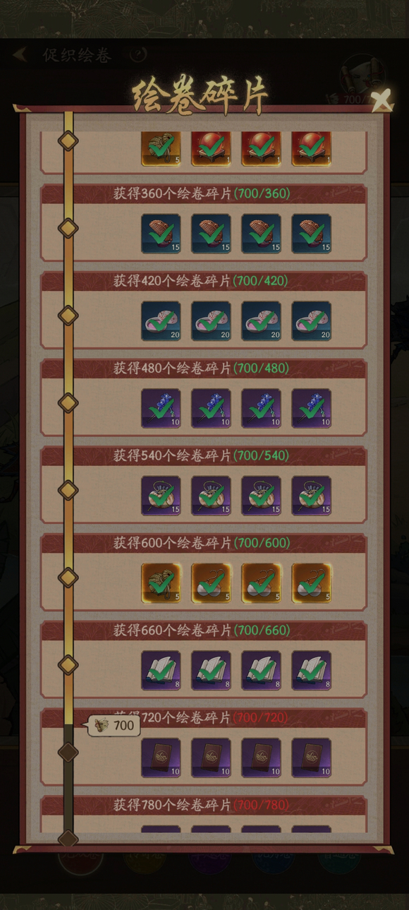 繪卷獎勵,後面的獎勵都是循環的了,給的獎勵一樣的