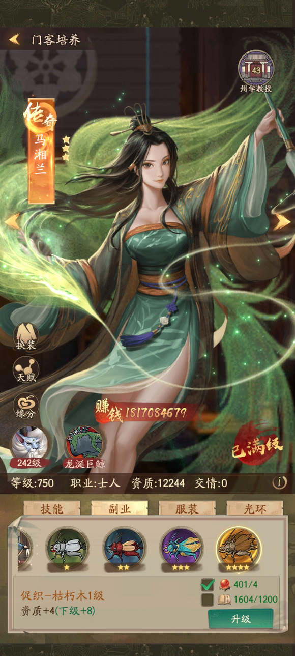 這個新版本直接把門客上限抬了一個大緯度,要喂海量資質丹,好不容易畢業的門客直接進度50%,讓門客畢業時間又延遲好久