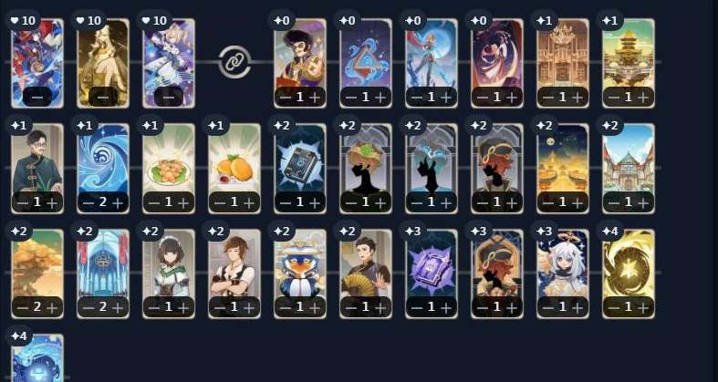 甘雨、莫娜、純水精靈、元素共鳴·交織之水2、交給我吧!2、卯師傅2、元素共鳴·愈療之水2、運籌帷幄2;