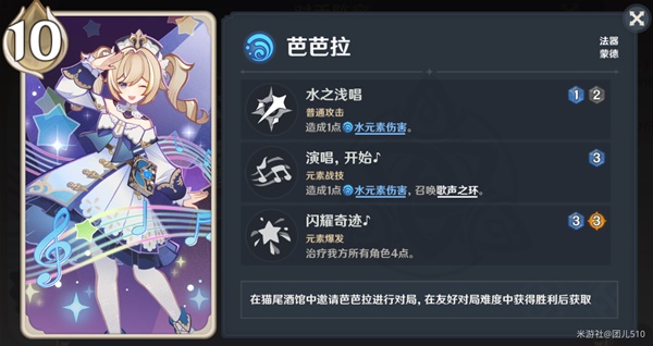 芭芭拉有召喚物有治療,但是歌聲之環會給自己隊友上水很容易被針對。適合在充能隊里當奶媽,在召喚隊里的反而拉低了生存能力。