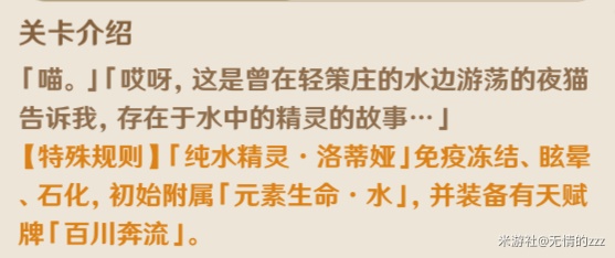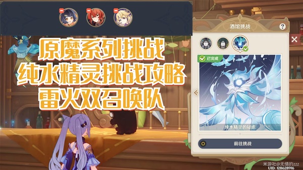 3.純水精靈會自覺附帶水元素附著(重點),所以我們在挑戰時,也是需要充分利用這一點來進行破關,我們可以利用蒸發/感電反應