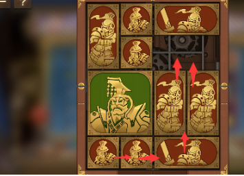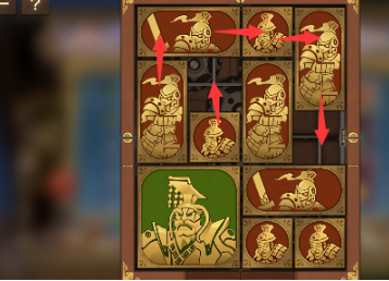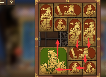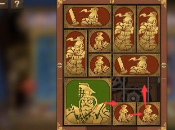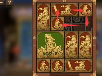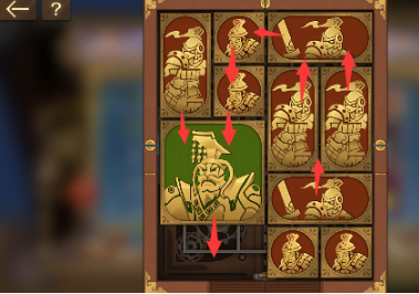 2、然後然將軍向上一格,右下角的正方形向左移動,其上方的圖形全部向下。