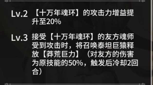 泰坦巨猿投入少收益大,造成生命上限傷害,輸出消耗能力穩定。為隊友加盾、群體破膽效果以及對輸出添加10萬年魂環等,大大增強我方輸出的上限。
