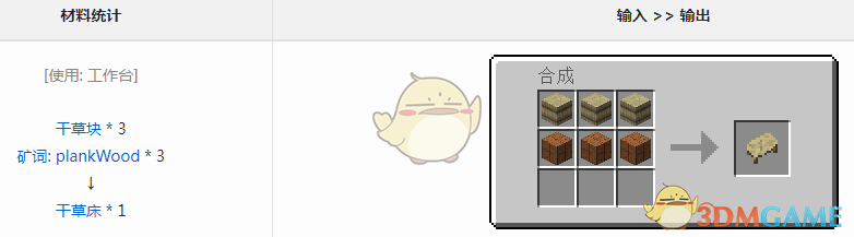 玩家躺在乾草床上時,回復的疲勞值只有普通床的一半,即每5秒額外恢復25點疲勞值。