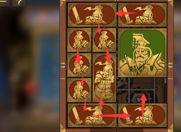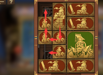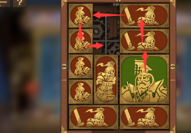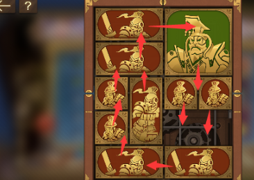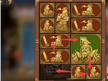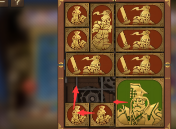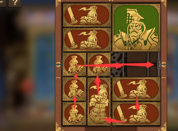 3、之後將右下角的長方形移動到上面,左下角的長方形向右移動,然後將左邊的所有圖形向下移動,右上角的長方形向左移動,將軍向上一格。