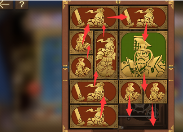 6、之後讓將軍下方的兩個正方形向下移動,其上面的圖形全部向下移動,左上角的圖形向右移動,左邊的所有圖形全部向上。