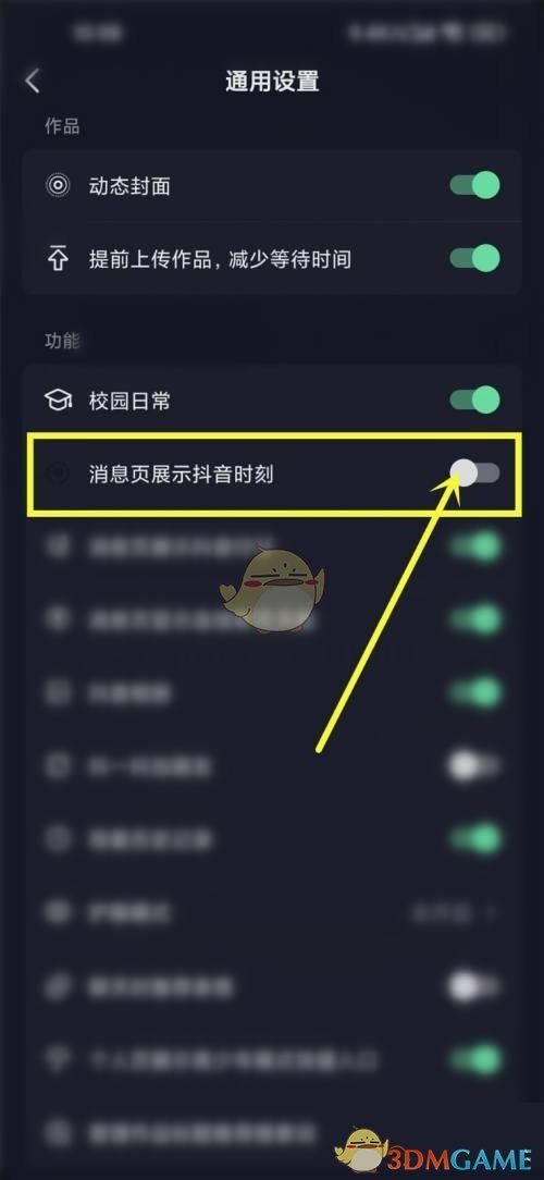 4、關閉消息頁展示抖音時刻右側開關即可。