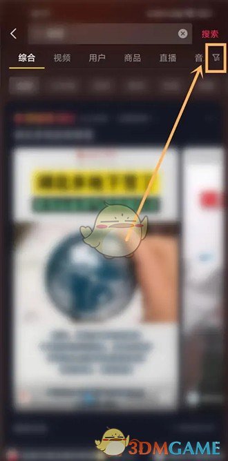 2、進入到搜索結果頁,點擊上方「篩選」圖標。