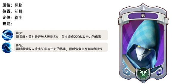 影揮舞匕首對最近敵人連刺3次,每次造成220%攻擊力的傷害