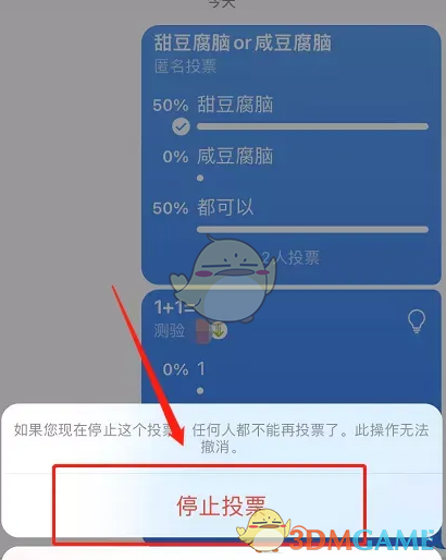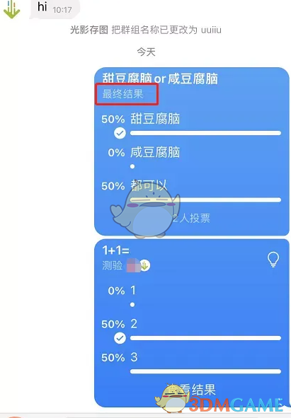 13、停止投票成功後,投票會顯示最終結果的字樣。