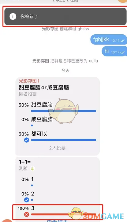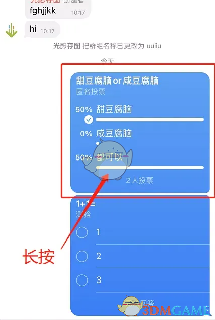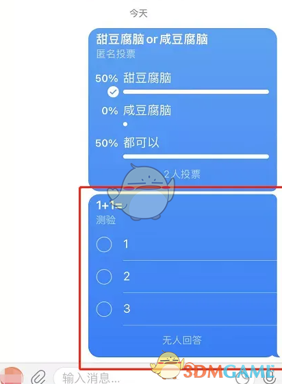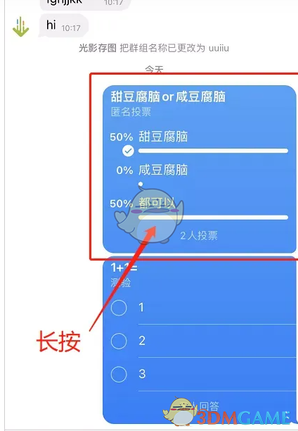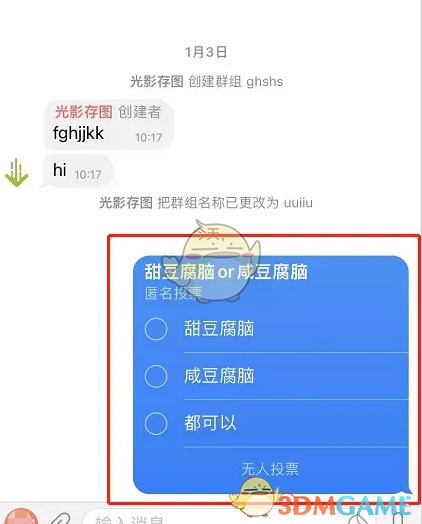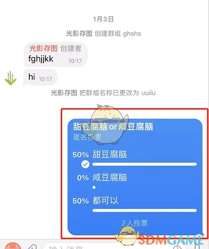 5、投票建立成功,所有人可以點擊「選項」進行匿名投票