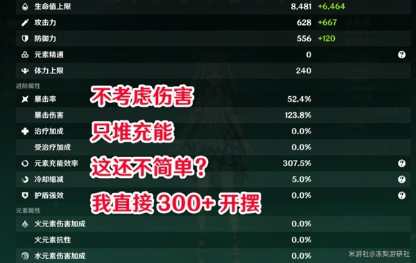 西風61.3%充能,暴擊會額外產白球,進一步降低充能需求。天賦確實有基礎攻擊力轉化額外傷害的效果。