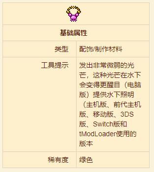 水母項鏈所發出的光要比挖礦頭盔發出的光暗淡,所以當玩家戴著挖礦頭盔會導致無法看見項鏈所發出的光。