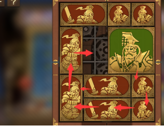4、最後中間的長方形向右移動,其下方的長方形向上移動,左下角的正方形豎直排列,將軍往左一格就可以完成本關。