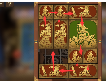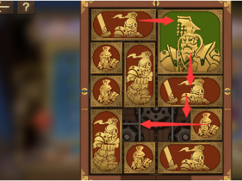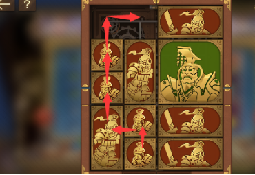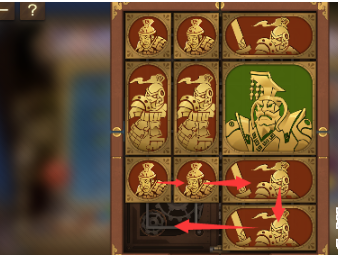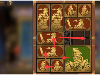 6、最後中間的長方形向右移動,其下方的正方形向上移動,左下角的正方形豎直排列,這樣將軍就可以向左走出去,玩成本關。