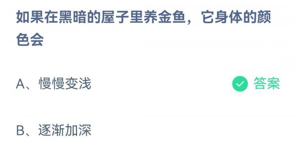 2022螞蟻莊園12月10日答案最新:如果在黑暗的屋子裡養金魚它身體的顏色會?