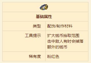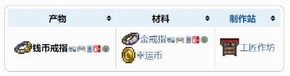 製作獲得:1個金戒指和1個幸運幣,在工匠作坊合成1個錢幣戒指。