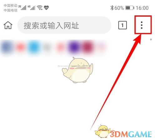 2、我們准備好插件之後打開 Kiwi Browser,進入主界面之後點擊右上方的如圖示的圖標。
