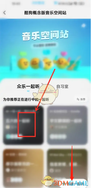 2、在音樂空間站,我們可以直接進入一起聽房間,也可以創建一起聽
