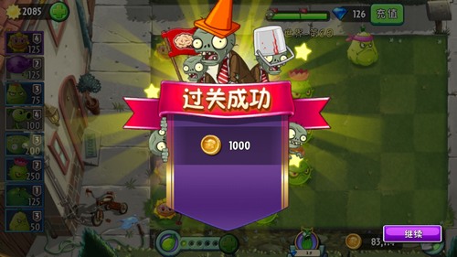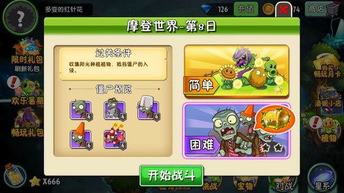 由此植物大戰殭屍2摩登世界第8天困難模式通關,如圖: