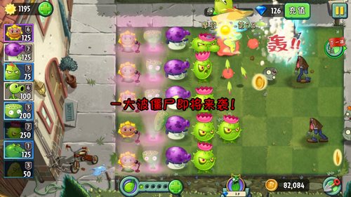 當一大波殭屍來襲的時候,玩家們給跨行攻擊的植物能量豆,這樣就能消滅大波殭屍了