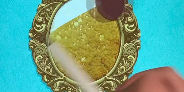 2、接著我們擠上膠水,用刷子均勻刷開,再用圓形工具打磨一遍,拿紙巾擦乾凈。