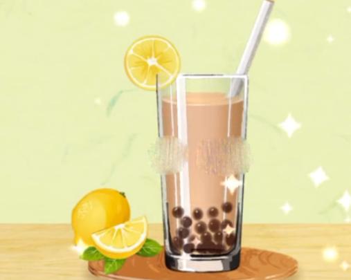4、最後將調好的奶茶倒進杯子里,放上檸檬片即可成功通關