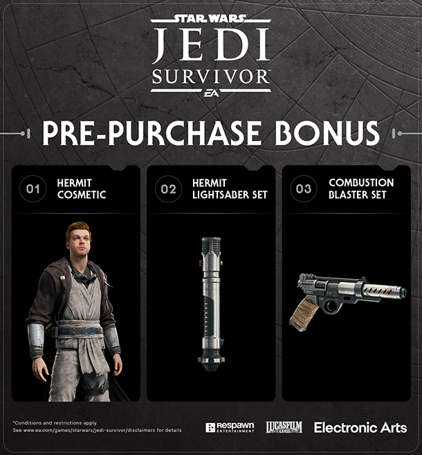 《星球大戰 絕地:倖存者》是星球大戰系列跨銀河系的第三人稱動作冒險遊戲,而遊戲預購可以獲得的獎勵也是很多的,具體的預購獎勵就是絕地生存」外觀組合包,組合包內容就是「隱士」外觀和「隱士」光劍套組等等。