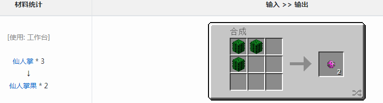 通過仙人掌,仙人掌,仙人掌無序合成獲得(2個),前期可以通過尋找沙漠地形而大量獲得的食材。