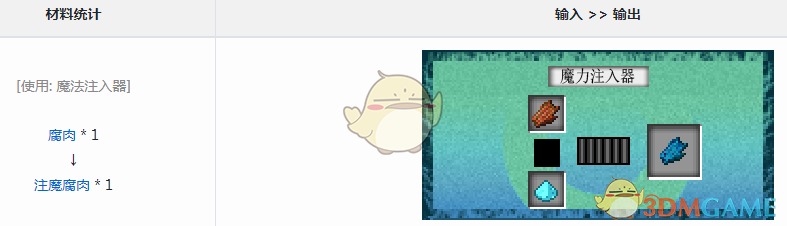 將腐肉放入魔法注入器可以去除飢餓效果,但是會讓它的營養價值與物品價值變低。
