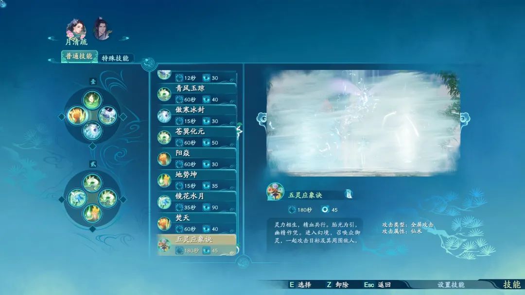 普通技能之外,每名角色還有三個特殊的連擊技能,藉由普通攻擊與蓄力攻擊的搭配,實現不同的攻擊方式。雖然本作可操作角色僅有四名,但四名角色之間的操作體驗差異非常大,直接體現在了技能設計上。男主角修吾的招式大開大合,女主角月清疏則姿態優雅,其招式動作的特點,又和人物的性格保持了一致性,是對角色形象的一種豐滿。