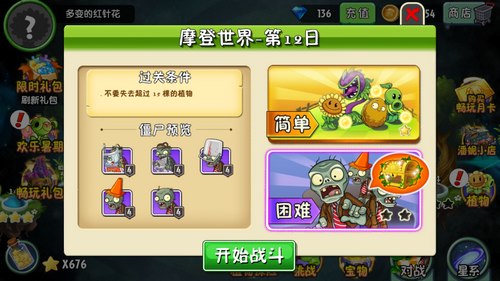 摩登世界第12日過關條件:不能失去超過15顆植物